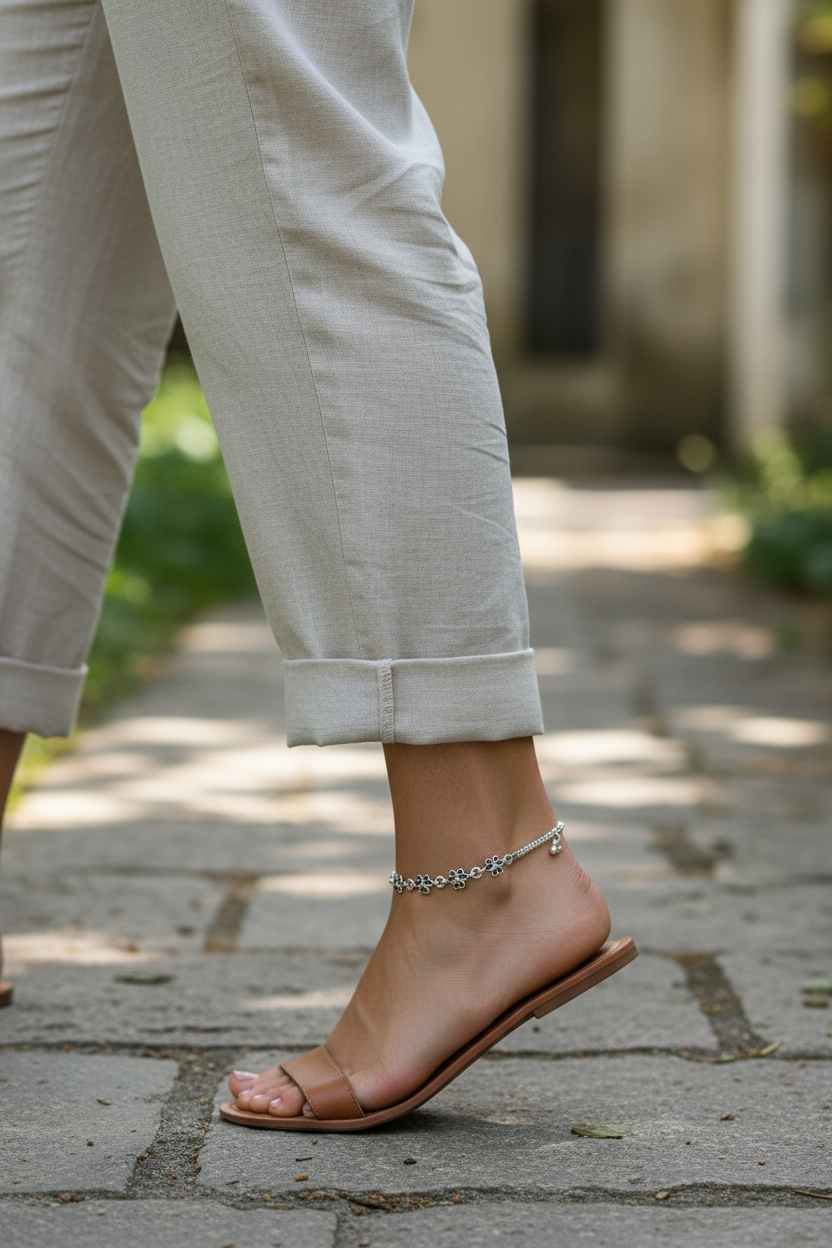 Add a touch of timeless elegance to your steps with this beautifully crafted silver anklet. Designed to shimmer with every move, it blends delicate craftsmanship with modern charm. Lightweight, comfortable, and effortlessly stylish, this anklet is perfect for both everyday wear and special occasions.